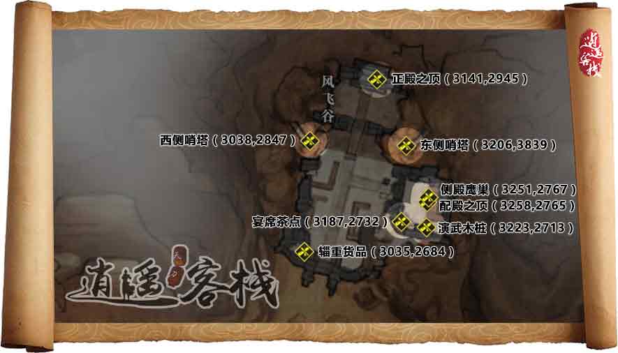 注:【侧殿鹰巢】不支持自动寻路,在侧殿屋檐上。