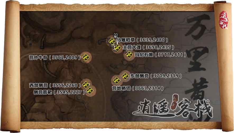 南部岗哨(2956,647) 沙地牛骨(3066,604)