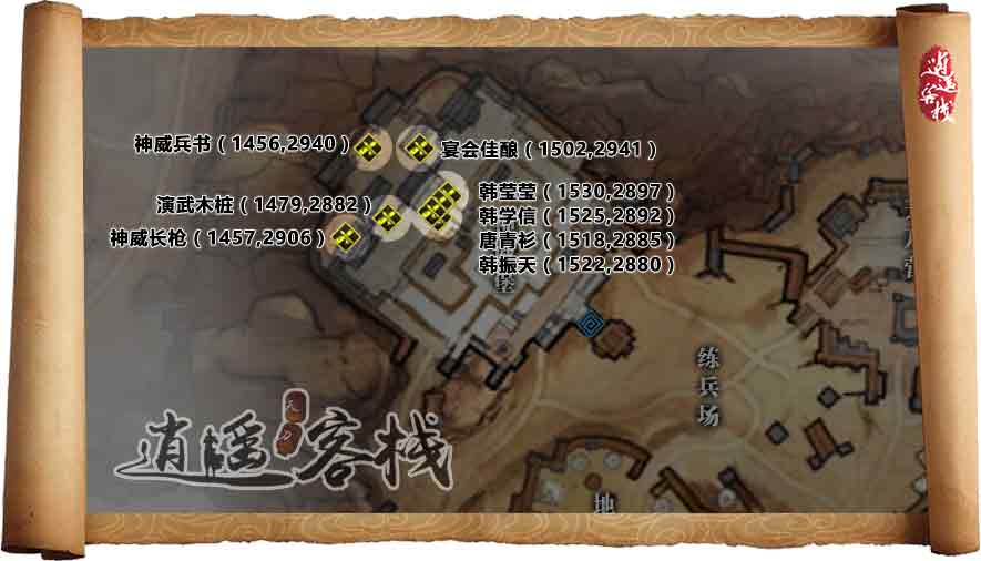 西侧哨塔(3038,2847) 演武木桩(3223,2713)