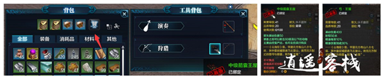 B键打开背包,在背包中可以找到身份工具箱,右键箭囊与弓箭可将两工具装备上。箭囊为消耗品,打猎需要打猎箭囊。