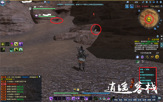 依旧随机选择一个地图,使用九龙鸣寻找到一个宠物。如下图,为40级广寒兔,需要中级夹子来抓捕。将夹子布置在边缘地带,如墙角等,靠近广寒兔,将其赶往夹子所在处即可。